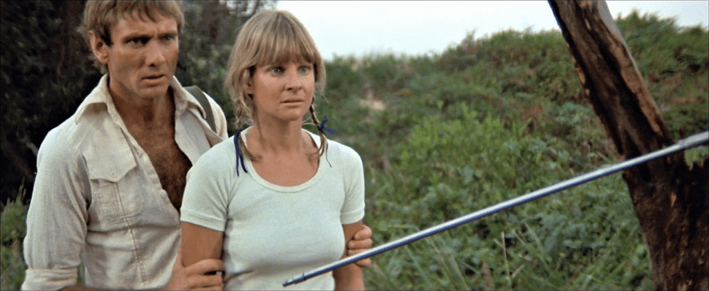 The conflict in the film outside of the couple is nature – the sea animals, the birds attacking Peter, large spider webs wrapping the car, and possums on their food. This broader antagonist is interesting, but overall does serve the plot a lot less than having a centered singular antagonist. The much more famous DELIVERANCE (1972) is similarly a film that explores Man’s dominance over nature and the ‘raping of the land’ in the conflict between the tough environment and the struggle of (distinctly male) ego and the human’s assumed dominance. However, a film like that which tackles more clear cut antagonists with significant moments of this conflict, such as the hillbilly rapist, work better plot wise for me. The way nature attacked in various ways was scattered too few and far between. I also found it difficult to feel it was an ‘exploitation’ film, as the film contains little exploitative imagery, outside of the exploitation in that we are gaining entertainment from a couple’s misfortune. However, I must praise it’s very well thought out and clear establishing of warranting nature’s attacks onto the couple. Marcia placing food outside and then killing the insects when they are on it, in their natural habitat as if she is shocked. There is a lot of littering of their belongings and blatant disregard towards the environment – even on the drive there we understand this, as Peter flicks his cigarette onto the side of the road which starts lighting the ground around it as they drive on. They do not treat themselves as visitors, but colonisers, as they put themselves into a place which is not accustomed to them and must adapt it to fit. This of course could also echo the colonial history of Australia.