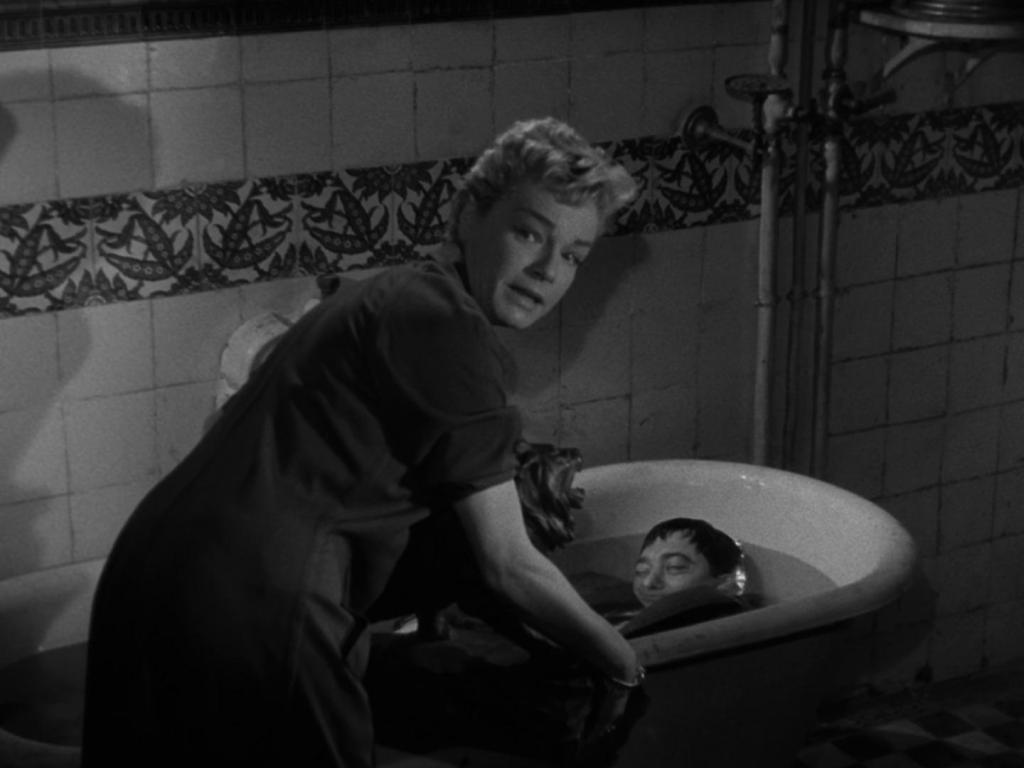 The pill is even tougher to swallow since, to achieve such a plausible performance, Nicole necessarily must have a certain degree of understanding and self-imposed empathy for Christina’s abuse. After all, earlier in the film, she conceals a black eye, which the audience then believes was a result of Michel’s abuse. Although direct patriarchal violence is revealed not to be a threat to her personally, it is an anxiety she understood closely enough to simulate. In the days of anti-feminist tradwives and Latinos for Trump, it’s important to underline that individual values unfortunately do not always correspond to the material needs of any given social group. Nicole represents no woman besides her own flawed self, and Christina’s abuse is a cost she’s more than willing to pay for a satisfactory return on investment. Diabolique fools its viewers similarly to how the female criminal pair fools the men – the film repeatedly shows what the two women are capable of together, and the audience forgets to ask instead what they are capable of individually.